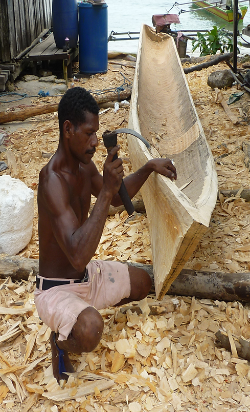 Sebuah kepal (perahu) diukir di pohon dan préparation minyak kelapa