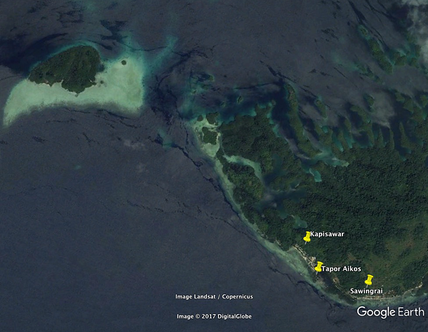 Pertama kita akan ke desa, sebenarnya ada dua desa, Sawinggrai dan Kapisawar, dihubungkan dengan jalan bagus kurang dari satu Km